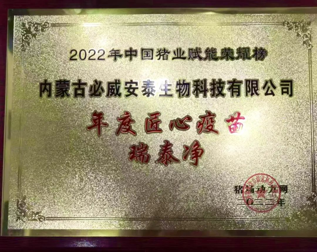 2023年3月22日,由豬場動力網(wǎng)、湖南農(nóng)業(yè)大學(xué)動物醫(yī)學(xué)院、國家生豬產(chǎn)業(yè)技術(shù)創(chuàng)新戰(zhàn)略聯(lián)盟主辦的第三屆中國豬業(yè)賦能大會暨賦能榮耀榜頒獎盛典,在長沙吉美國際會展酒店隆重舉行,內(nèi)蒙古必威安泰生物科技有限公司及名星產(chǎn)品瑞泰凈再斬殊榮,獲得“年度品牌創(chuàng)新企業(yè)”和“年度匠心疫苗獎”。